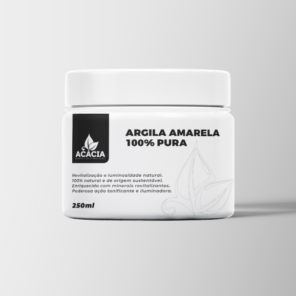Argila amarelo 100% pura Frasco com 250mlNossa Argila Amarela é fornecida em pote para facilitar o manuseio e garantir sua pureza e eficácia. Aproveite os benefícios desta maravilha natural e dê à sua pele o cuidado que ela merece. Adquira já a sua! -