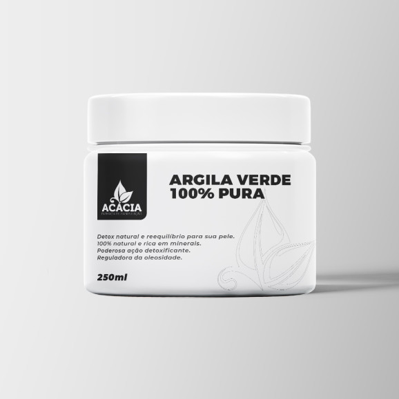 Argila Verde 100% pura Frasco com 250ml A Argila Verde é entregue em um pote para facilitar o manuseio e assegurar a integridade e a máxima eficácia do produto. Sinta o poder revitalizante deste presente da terra e revigore sua pele. Faça seu pedido agora! -