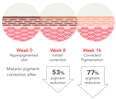 Os primeiros sinais de correção de pigmento tornam-se visíveis após 6 semanas de aplicação uma vez ao dia. Resultados ótimos são obtidos após 8 a 12 semanas de uma aplicação diária.