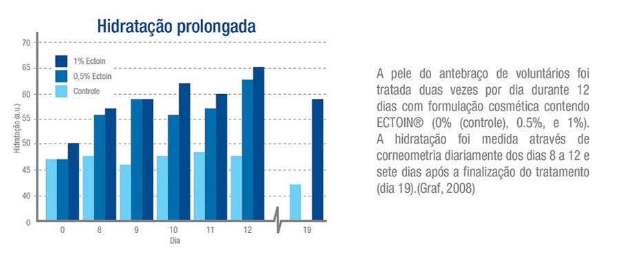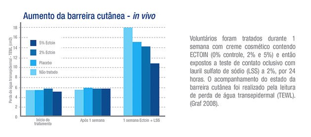 Efeitos da hidratação intensa de Ectoin Creme 7% na preservação da barreira cutânea Inúmeros testes realizados por institutos de pesquisa dos Estados Unidos e Europa indicam a eficiência de Ectoin nos cuidados auxiliares no tratamento de manifestações de quadros inflamatórios da pele através do reestabelecimento da barreira cutânea.