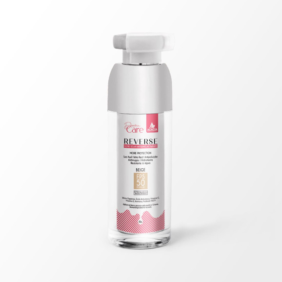 Formulação exclusiva de fotoprotetor da Acácia com ampla proteção UVA (PPD20), UVB (FPS 50), luz azul, IV, antipoluição, com ativos antienvelhecimento, e que estimulam a produção de colágeno, antioxidantes e hidratantes. É resistente à água, não escorre e não arde os olhos.