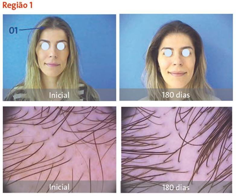 Em todos os pacientes houve melhora da queda de cabelo relatada, já no primeiro mês do tratamento. O surgimento de novos fios foi relatado a partir de 60 dias. Houve aumento na espessura dos fios, observado a partir de 120 dias. As reações adversas foram raras e transitórias