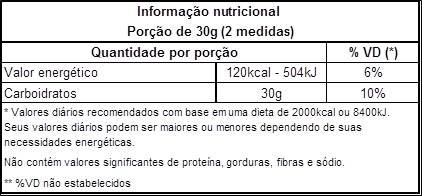 Tomar 30g (2 medidores) diluídas em com 1 copo de água, leite, iogurte ou suco de fruta 30 minutos antes, durante e/ou depois da realização de atividades físicas que necessitem de grande quantidade de energia e esforço muscular.