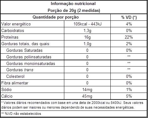 Nutrição clínica: Dose conforme necessidade de reposição protéica individual (0,6 a 1,5g/kg de peso). Ingerir diluído nas preparações, conforme prescrição médica/nutricional. Nutrição esportiva: - Dose feminina diária: 30g/dia - Dose masculina diária: 60g/dia Ingerir meia dose 2x ao dia, após o treino e antes de dormir. Diluir metade da dose diária em leite desnatado ou suco de frutas e completar com a bebida preferida até o volume de 200ml, 2x ao dia.