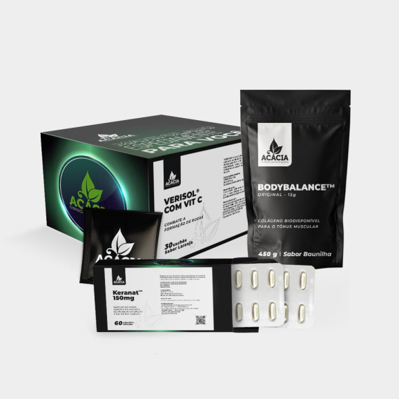 Formulação 1 - Pele Verisol® 2,5g Pó efervescente sabor laranja 1g Caixa com 30 sachês Dissolver 1 sachê em meio copo de água ou suco e tomar 1 vez ao dia Formulação 2 - Corpo (tônus muscular) BodyBalance® 15g – Sabor baunilha Pacote com 450g com copo dosador Dissolver 15g em um copo de água ou bebida da preferência e tomar 1x ao dia.